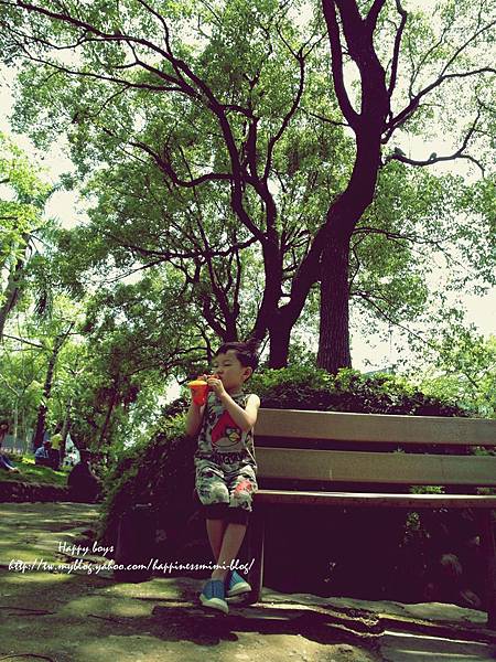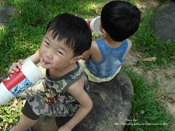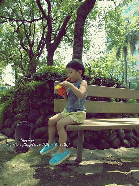 玩很久了,休息一下等拔拔拿飲料來解熱.....