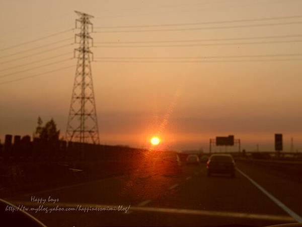 在快速道路上的黃昏,太陽把天空都染成了橘紅色
