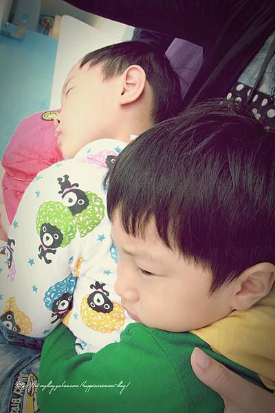 太早起,小豬有點累,趴在我的腳上休息,牛也被海風吹到想睡了,環抱著哥哥看風景