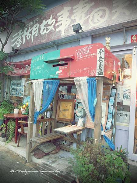 很熱帶風情的店,用浮球畫的貓咪,可愛