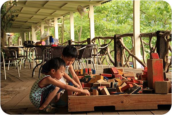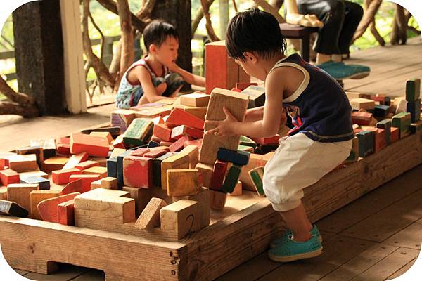 找了最靠近積木區的位置坐下後,孩子就衝去玩積木囉(在這玩很久餒)