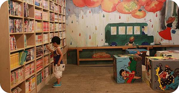 因為毛毛雨我們趕快躲進就在國小旁的劉興欽漫畫館裡
