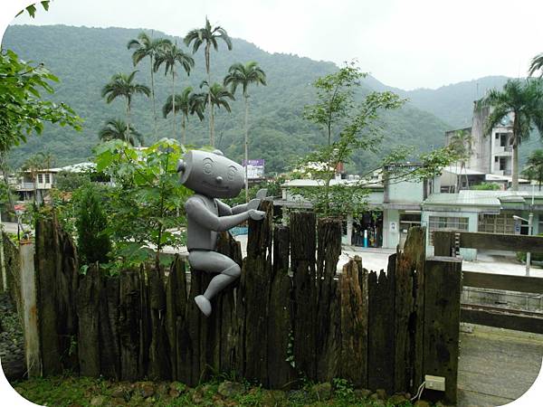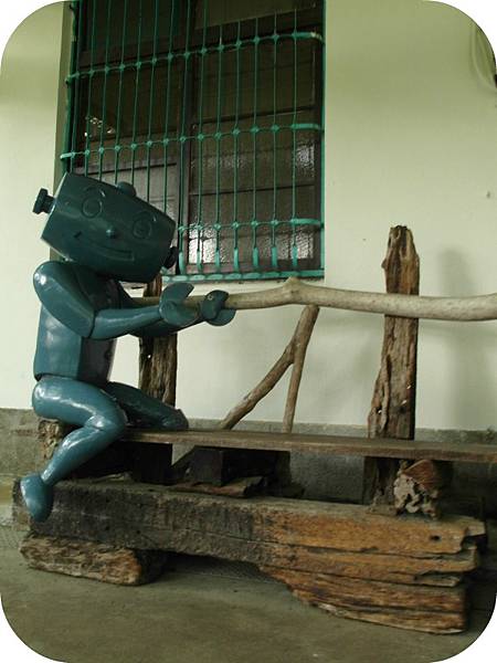 大嬸婆家門口有一個可愛的機器人幫忙看家