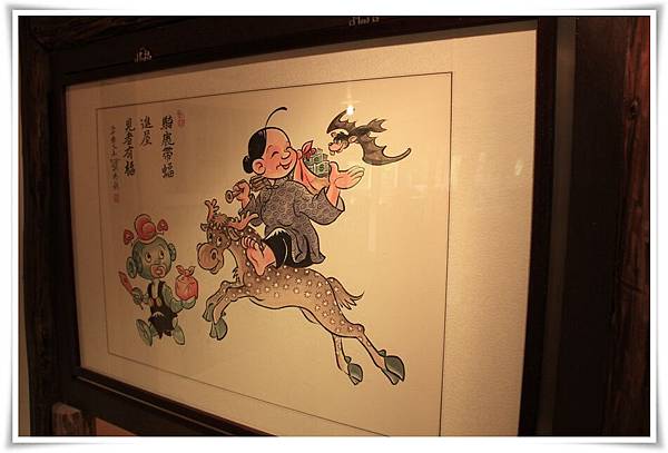 一進門,就看到這 『騎鹿帶蝠 進屋 見著有福』的畫作
