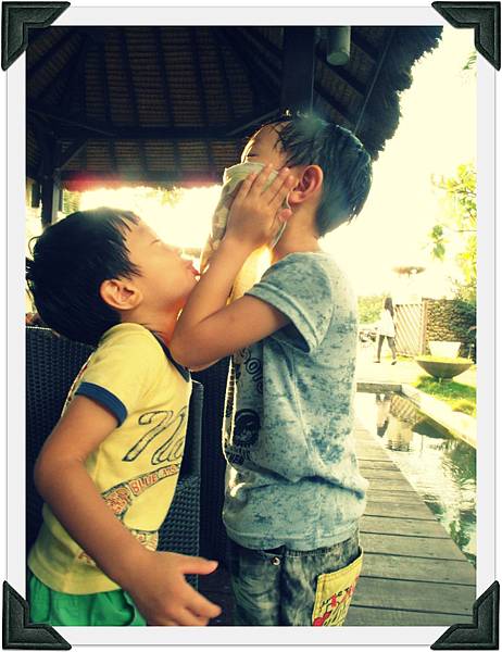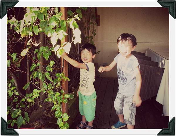 兩小子身後的位置也是半戶外 (兩個在玩灑水器的水)