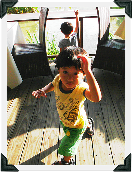 魚池是繞著我們的座位區一圈,小孩呢??就一下跑這邊一下跑那邊的看著魚兒魚兒水中游