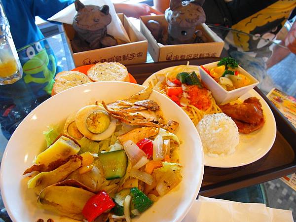 離開 教室後肚子也餓了,我們在一旁的餐廳點了雞肉沙拉跟雞翅套餐 ,味道還不錯喔