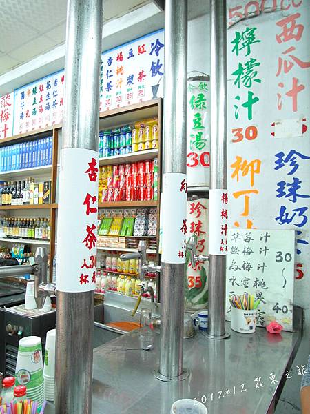 第五家。廟口紅茶。特色就是將紅茶或是其他飲品存放於二樓,以特殊的鋼管設計使其可以傳導到一樓