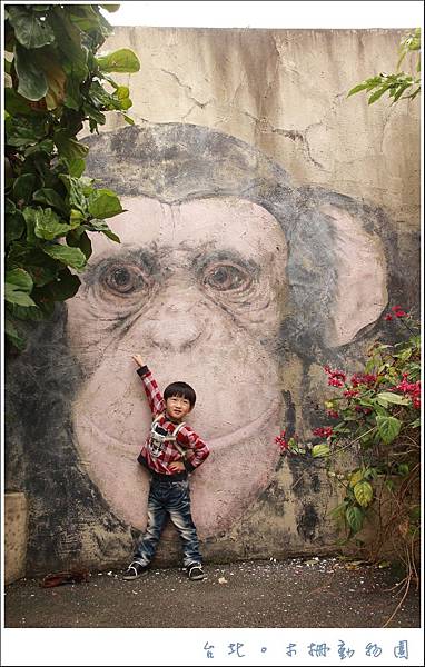 動物園裡處處有驚喜,發現圍牆上有隻猩猩在偷看我們耶~嘻