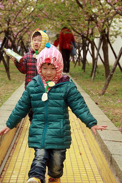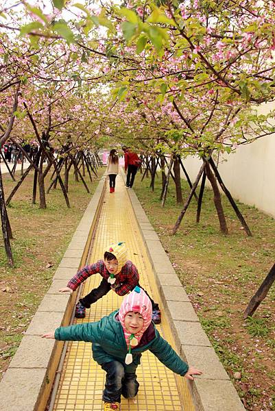 長長的櫻花步道,感覺好像是條水溝耶...哈哈