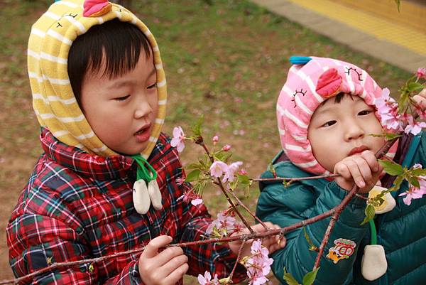 小宏說要聞花香聞到都變鬥雞眼了......(花花本身就生長的較低又往下長的,我們沒有把花折下來唷)
