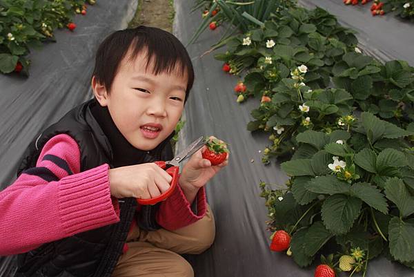 摘了很多年的草莓,學會要挑小顆一點的草莓最好吃,不過孩子看到又大又紅的草莓,總會忍不住給它剪下去